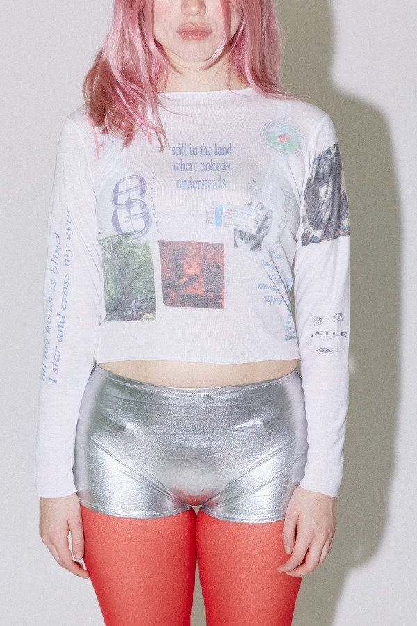 todas las estampas de esta camiseta son tapas de discos de Drain Gang y Yung Lean: