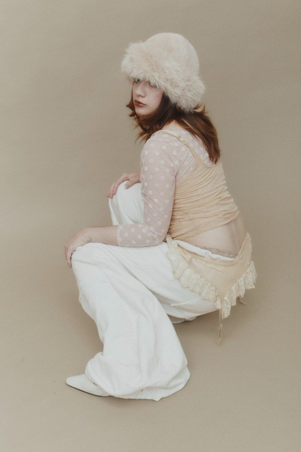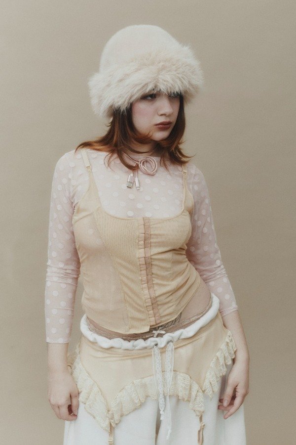 portaligas: elastico en cintura y volados de encaje, ganchos de agarre a tono adelante y atrás